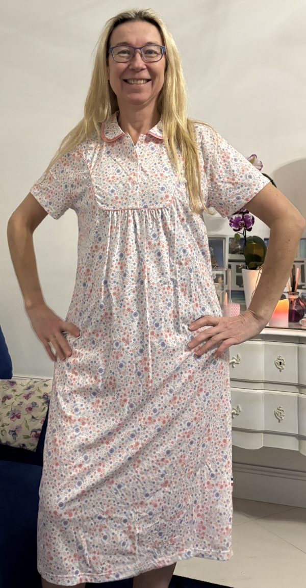 Chemise de nuit jersey coton col Claudine finition biais satin - manches courtes..