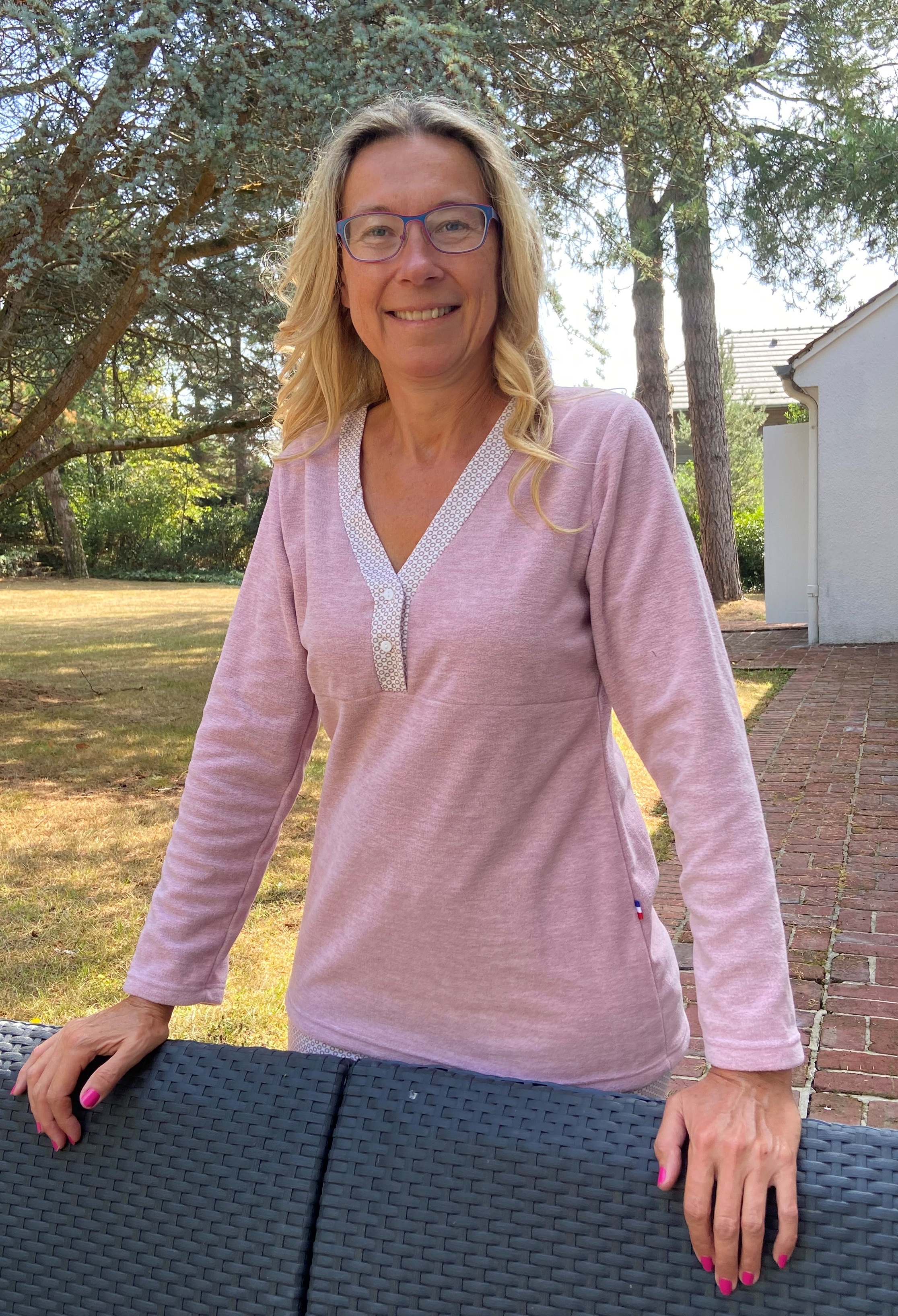 Pyjama polaire bande encolure, pantalon tissu contrastant 305577/POLAIRE